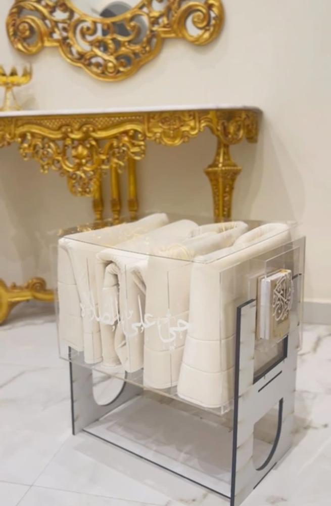 جديدنا صندوق سجاد مقسم مع حامل لون ابيض انيق و٤ سجادات مبطنة وكرت اهداء