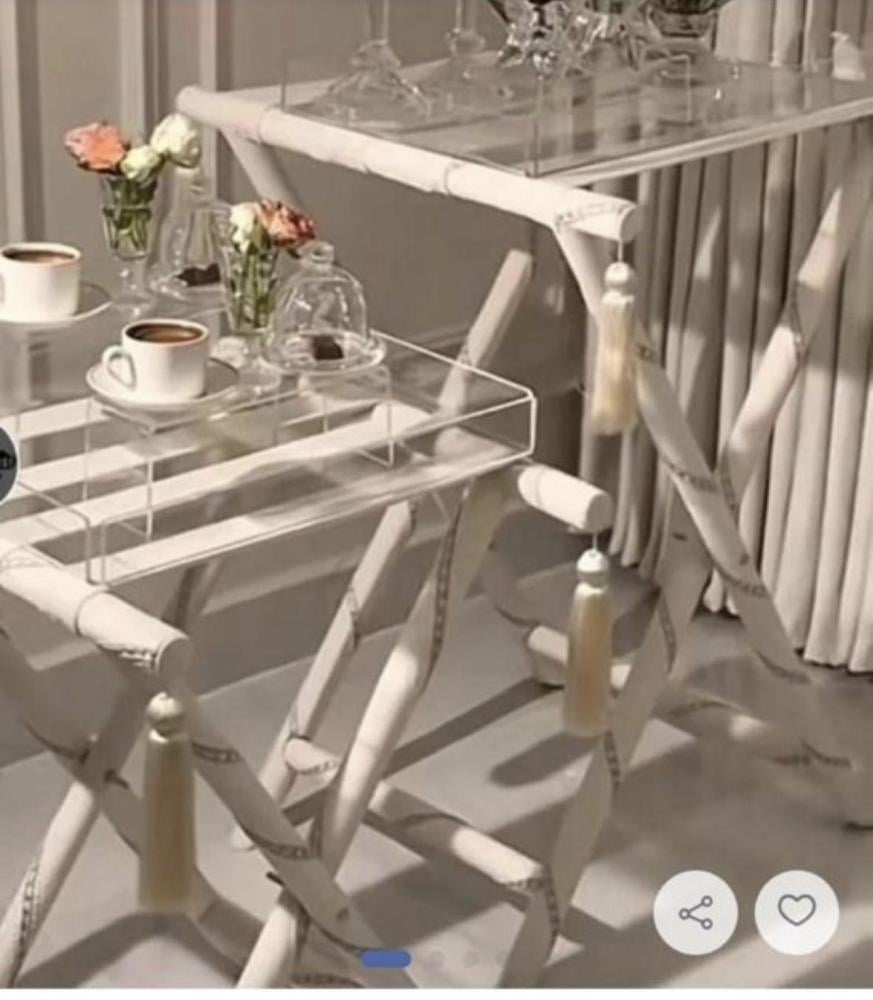 ضيافة فخمة عبارة عن طقم طاولات مخمل مع ٢ صينية اكريللك أنيقة