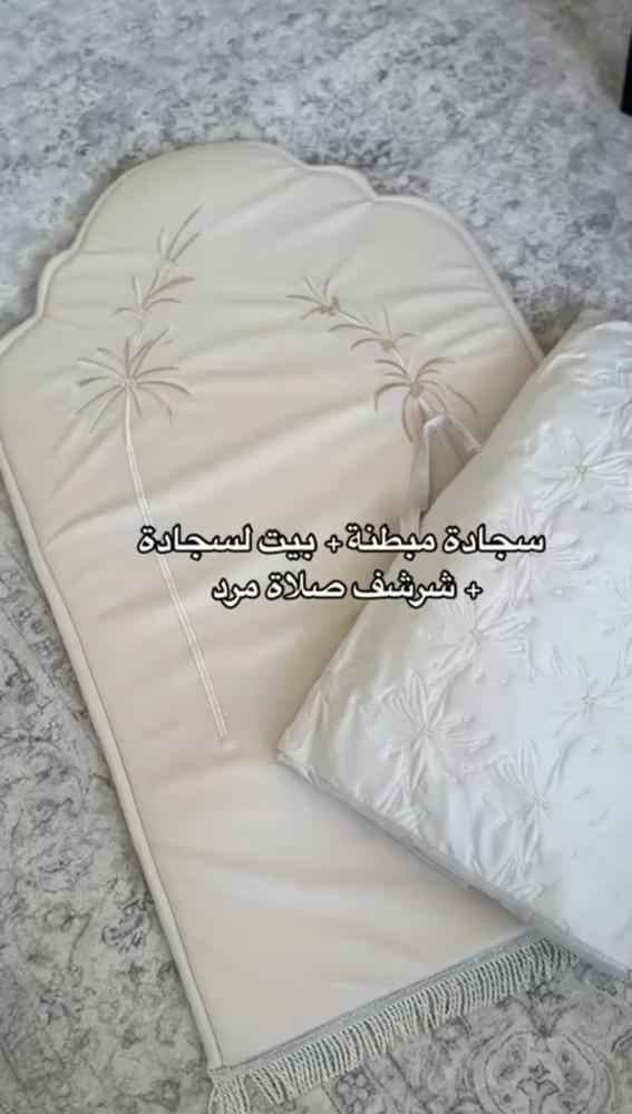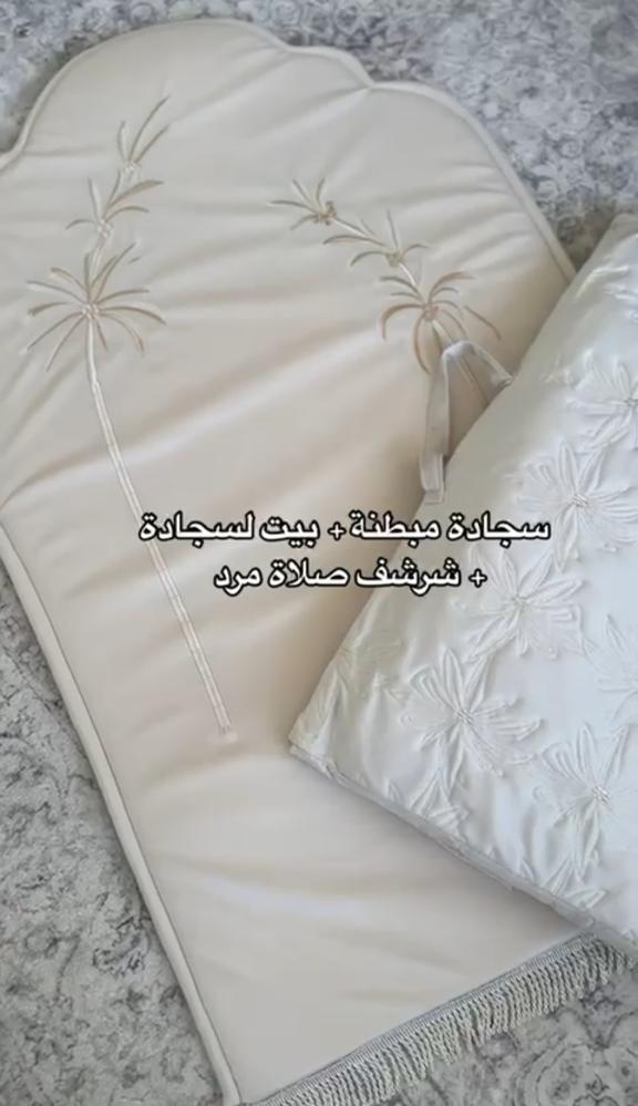 طقم سجاد فخم يحتوي على سحادة فخمة مطرزة وشرشف صلاة قطن وبيت مصحف مطرز